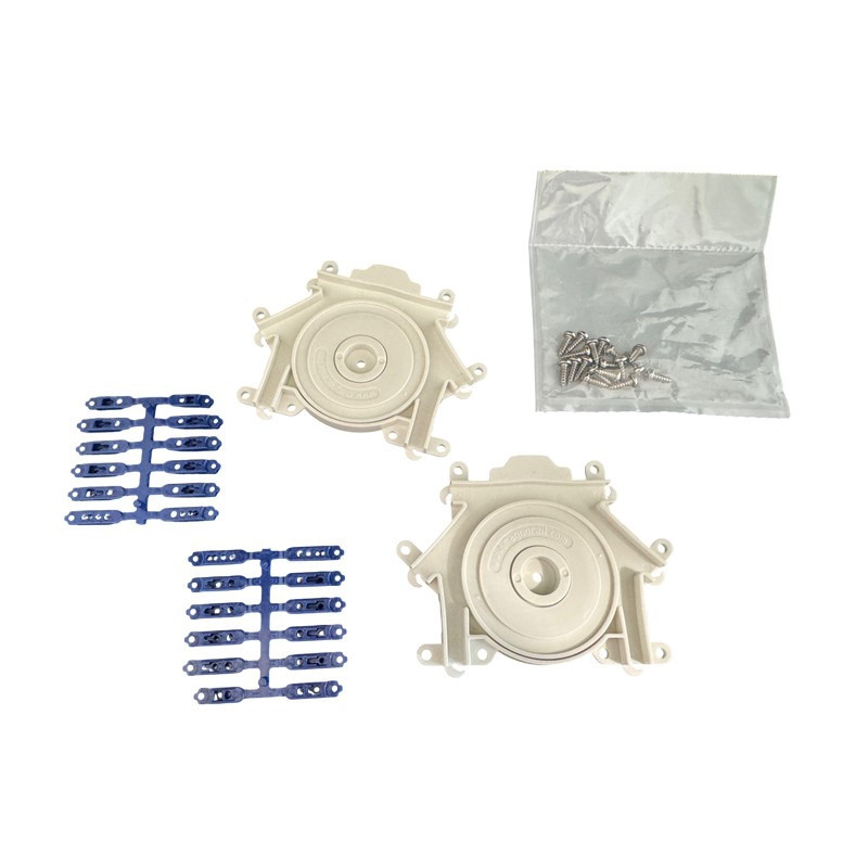Composition: 2 complete 54 mm diameter multi-exit tracks with 30 cm of blue chain. 18 stainless steel screws for fixing the tracks to the support.
