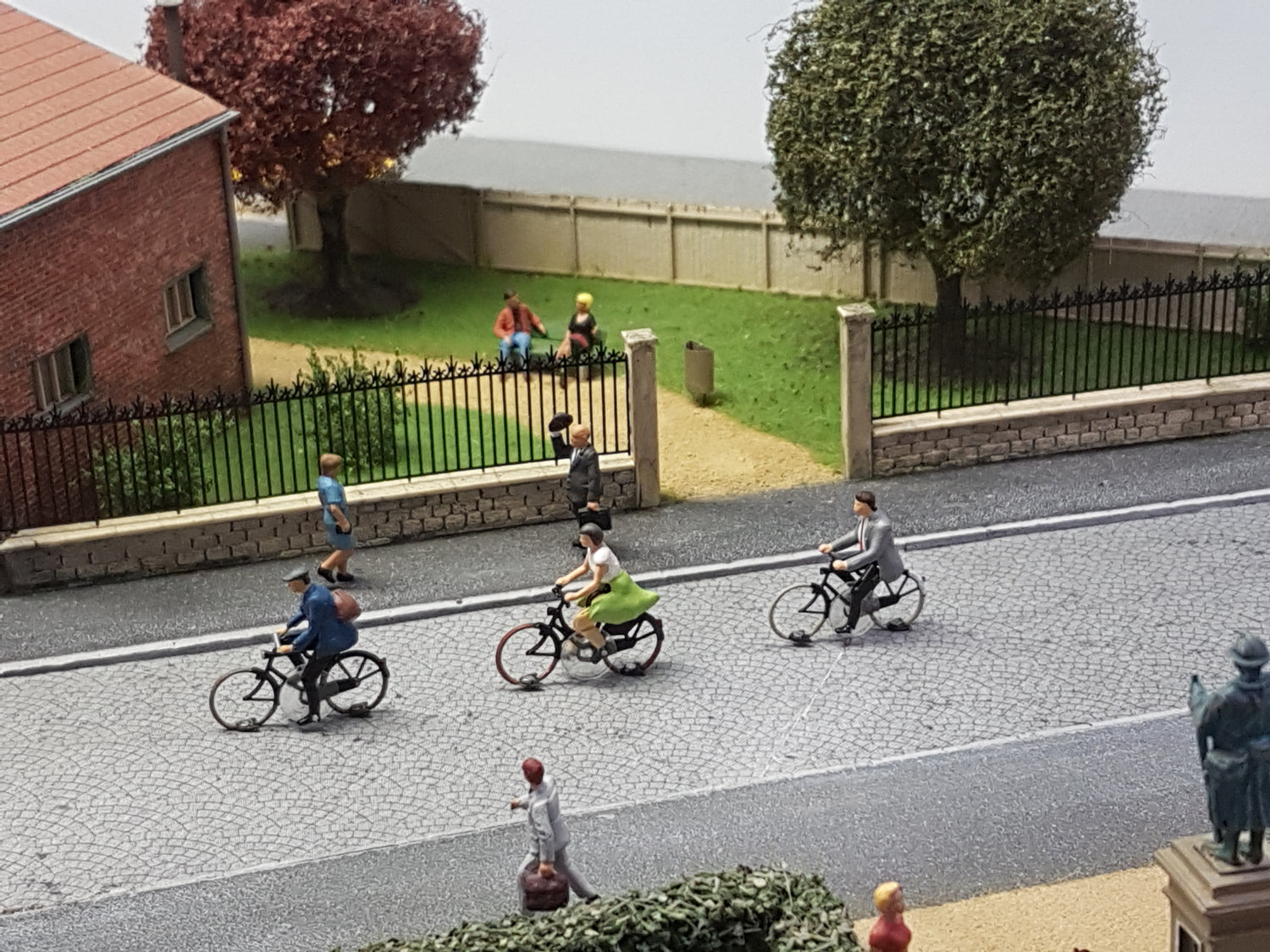 A ready-to-run tandem bicycle with two figures, each with articulated legs